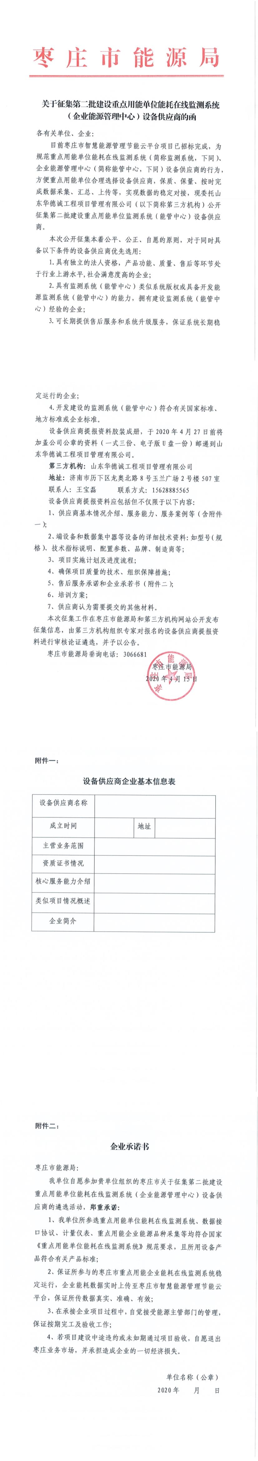 棗莊市能源局關于征集第二批建設重點用能單位能耗在線監測系統 (企業能源管理中心)設備供應商的函
